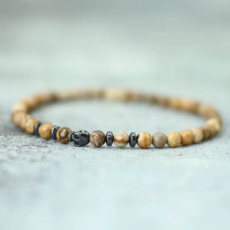 Bracelet minimaliste en pierre naturelle et rune skull ♂️